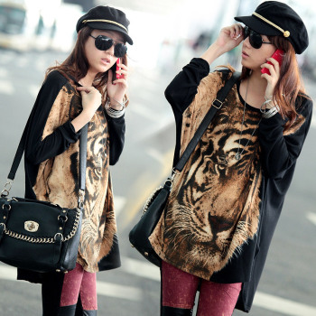 2014新春装新款胖mm韩版显瘦中长款大码女装胖妹妹春装老虎头T恤